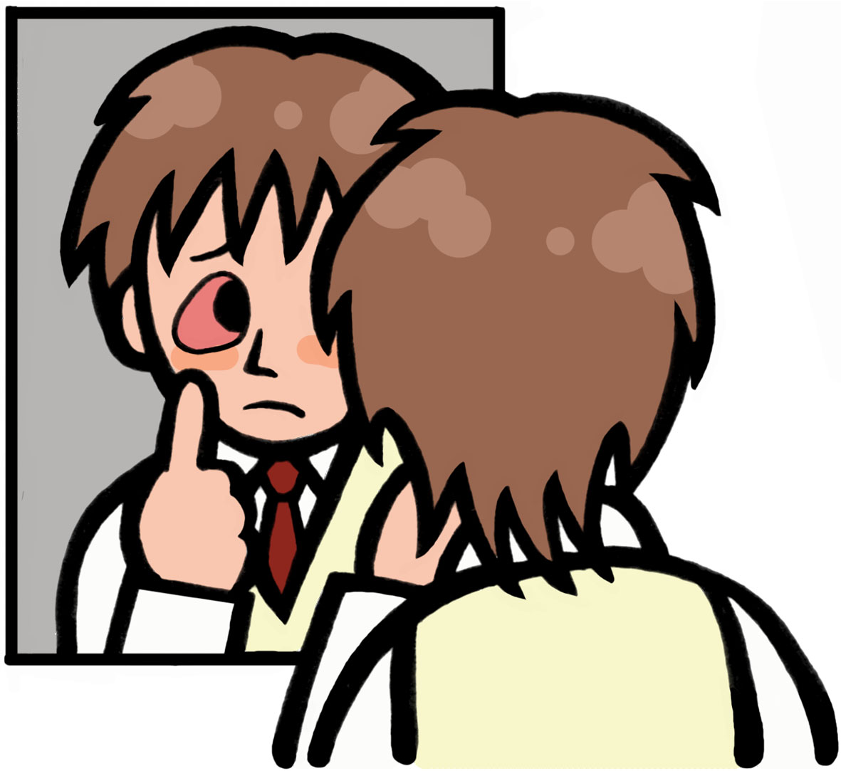 はやり目(EKC)はウイルスが感染することで結膜または角膜に炎症を起こすため、角結膜炎と表現されます。主な症状として、眼が充血して白目の部分が赤くなり、目やにや涙が多く出るようになります。