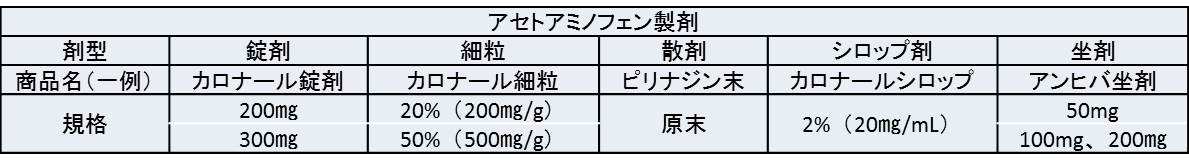 小児に使用される解熱剤(アセトアミノフェン製剤)