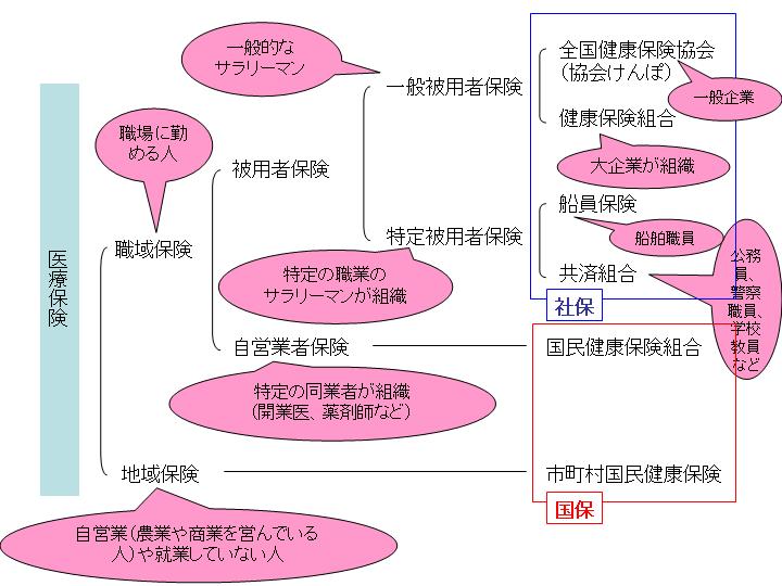 社会保険は被用者保険とも言われ、職場に勤める人を対象とする職域保険です。加入者がどの保険者に加入するかは、加入者がどこに雇用されているかで異なり、社会保険は健康保険、船員保険、共済保険などに大別されます。なお、社会保険の保険料は給与から源泉徴収される仕組みとなっています。