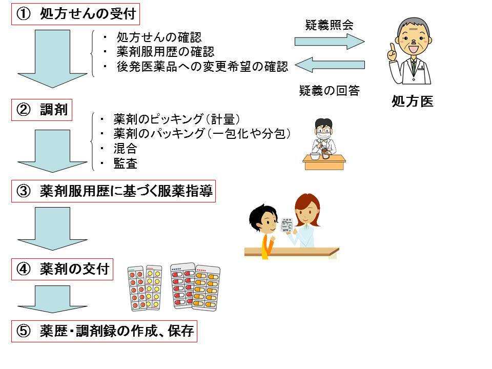 3.薬剤服用歴に基づく服薬指導、 4.薬剤の交付