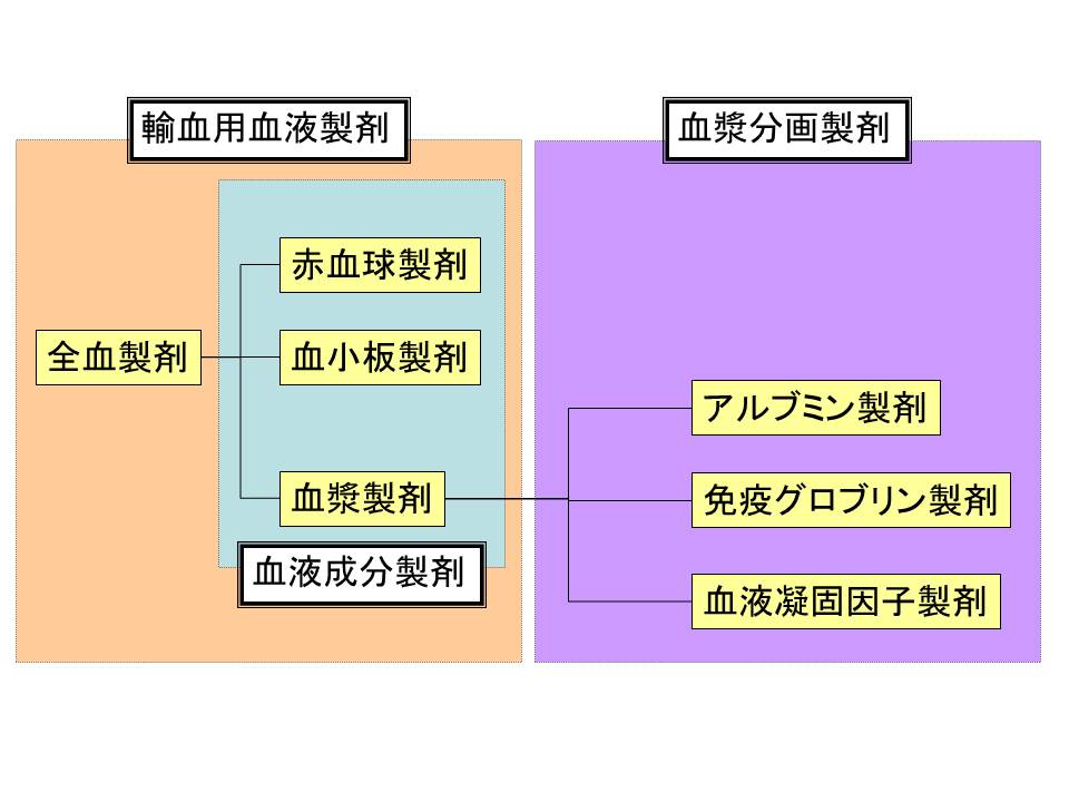 血液製剤は、薬事法第2条の特定生物由来製品に含まれ、特定生物由来製品の中で、ヒトの血液を原料とする医薬品を血液製剤と呼んでいます。